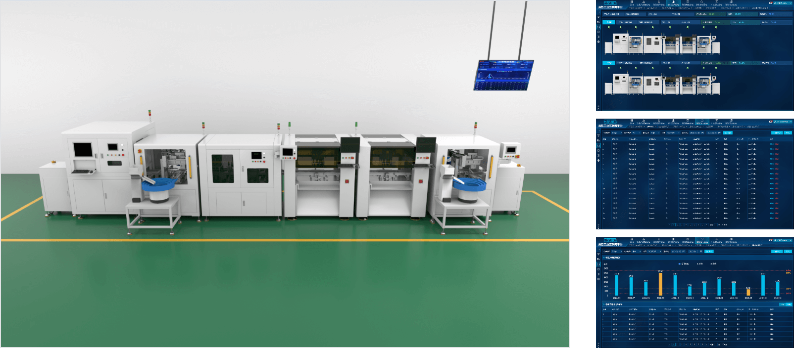 The LED Chip Intelligent Production Line enhances production efficiency through the design and optimization of machinery. Combined with a production statistics monitoring system and real-time dashboards at the line head, it monitors production capacity and quality, optimizing management and workshop production control.